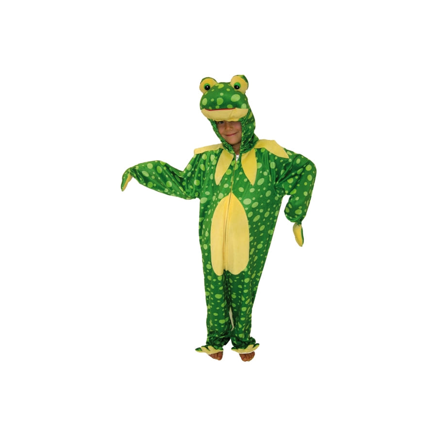 Jouez à la grenouille ! Cette splendide tenue : combinaison de grenouille verte pour enfant, est effectivement conçue pour tous les enfants, que ce soit fille ou garçon. Elle est constituée par une très jolie combinaison verte et jaune. Des pois verts clairs sont imprimés sur l'intégralité de la tenue, et la capuche est rehaussée d'une ravissante tête de grenouille rembourrée, avec deux magnifiques grands yeux. On trouve également des petites pattes de grenouille, cousues à l'extrémité des manches et au bas de la combinaison, pour donner un réalisme impressionnant. Ce costume siéra à tous les événements déguisés tels que carnaval, anniversaire, soirée animaux ou spectacle... Notez que la combinaison s'attache à l'aide d'une fermeture éclair située à l'avant.