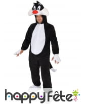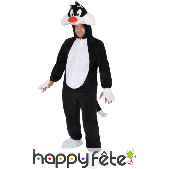 Grosminet n'en finira jamais avec ses stratagèmes pour attraper Titi ! Ce personnage populaire de l'univers des Looney Tunes sait faire rire les petits et les grands. Découvrez sans plus tarder la combinaison de Grosminet pour adulte. Choisissez une mascotte spéciale pour animer un grand événement. Ce déguisement sous licence Cartoon est formé par une superbe combinaison en peluche, un vêtement à la fois doux et confortable, de couleur noir et blanc. Une grosse tête de grosminet est disposée sur la capuche. La combinaison se ferme sur la partie avant avec une fermeture éclaire. Ce déguisement pour homme ou femme est spécialement dédié aux amateurs de Cartoon.