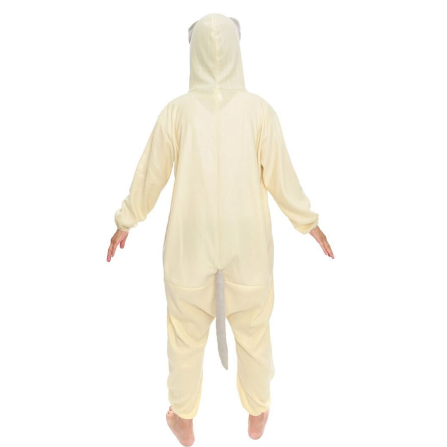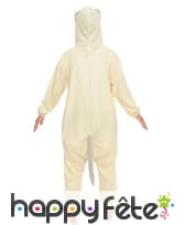 La zone blanche sur le devant marque le ventre du félin et dissimule une fermeture éclair qui aide à enfiler la tenue.