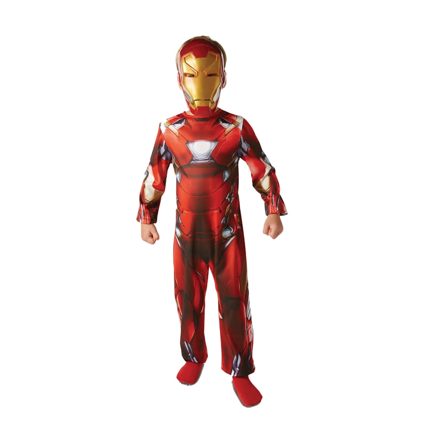 Le super-héros en armure est de retour pour de nouvelles prouesses ! Grâce à son génie, il a su élaborer une armure ultra sophistiquée et moderne que vous aurez l'opportunité d'offrir à votre petit garçon. Quelle aubaine de porter cette combinaison de Iron Man civil wars pour enfant. Ce modèle de couleur rouge est sous licence Iron Man. Le petit super-héros sera habillé d'une combinaison à manches longues, avec imprimés similaires aux détails retrouvés sur l'armure d'Iron Man. Un masque intégral viendra recouvrir son visage. L'accessoire est parfaitement identique à celui que porte notre héros. Article proposé en différentes tailles pour les garçons de 3 à 8 ans.