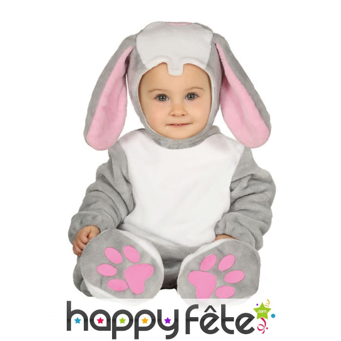 Cette tenue n'est pas qu'un simple déguisement, c'est une invitation à entrer dans un monde de tendresse et de sourires. La combinaison, d'un gris doux avec un ventre blanc, est si confortable que votre petit trésor se sentira comme dans un nuage. Et le détail qui fait toute la différence ? Les adorables chaussons, avec des empreintes de pattes de lapin roses dessous. Imaginez ces petites pattes qui gambadent dans la maison, un vrai spectacle de mignonnerie !