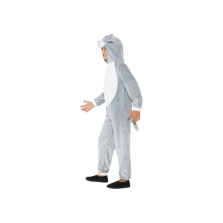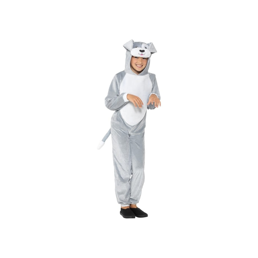 Le chien est bien connu pour être le meilleur ami de l'homme. Il l'est aussi pour les petits enfants ! Filles et garçons vont assurément apprécier cette combinaison de petit chien gris pour enfant. Elle pourra être portée pour un goûter d'anniversaire ou pourquoi pas pour une fête à l'école. Il s'agit d'une combinaison à manches longues avec queue intégrée à l'arrière. Elle associe les couleurs gris clair et blanc. Le tissu utilisé procure du confort et il est très agréable au toucher. La tête du chien est représentée par la capuche avec les oreilles qui retombent, les petits yeux tout ronds et la petite langue rose qui sort. Le costume a été élaboré sous différentes tailles, pour les enfants de 4 à 12 ans. A vos commandes !