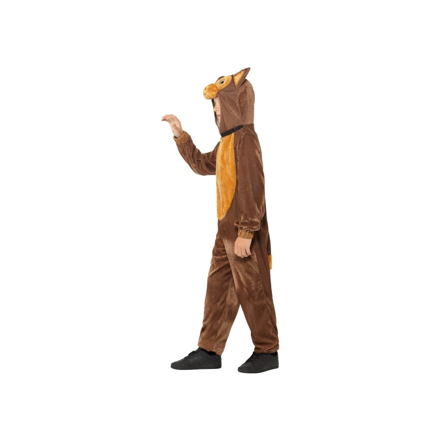 Les enfants adorent les animaux de compagnie. Le chien est en tête de liste pour son caractère joueur et son tempérament adorable. Se transformer en gentil toutou est un challenge bien drôle à relever. La combinaison de petit chien marron pour enfant est adaptée aux petites filles comme aux petits garçons. Elle est douce et confortable, de couleur marron avec quelques touches d'orange. Les manches sont longues et la capuche forme la tête du chien. Vous aurez droit à des oreilles pointues ainsi qu'à des petits yeux ronds qui lui donnent un air sympathique. Retrouvez aussi une queue à l'arrière. A noter que le déguisement est disponible en plusieurs tailles pour les 4 à 12 ans.