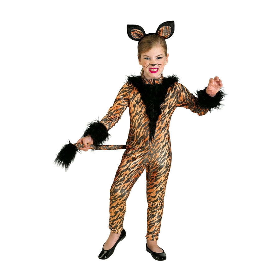 Nous vous proposons ici cette combinaison de petit tigre pour fillette, qui est bien sûr faite d'un tissu en imitation peau de tigre.