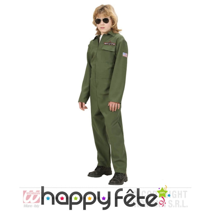 Partir d'un bout à l'autre de la planète toute l'année est un rêve auquel seuls les professionnels du pilotage ont droit. Rendez-vous à la prochaine fête déguisée avec cette superbe combinaison de pilote de chasse pour enfant. Votre petit garçon prendra ses grands airs dans cette combinaison à manches longues de couleur vert armée. Vous y retrouverez un insigne sur le devant. Pour accompagner cette tenue de pilote ou d'officier de l'armée de l'air, vous pouvez vous munir d'une paire de lunettes noires ou bien d'un couvre-chef spécial, à commander aussi sur le site happyfete. Différentes tailles sont proposées pour les 5 à 10 ans, vous pourrez ainsi choisir la combinaison selon l'âge de votre enfant.