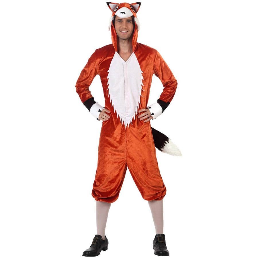 Rusé comme un renard dit-on ! Pourquoi ne pas se faufiler dans la peau de cet animal si célèbre pour sa ruse ? Relevez le défi avec cette combinaison de renard pour homme adulte. Elle a été conçue dans un tissu imitation velours. Le vêtement est de couleur orange avec une fausse fourrure blanche sur le devant. La fermeture s'effectue par devant à l'aide de scratchs. Les manches sont longues, tandis que le bas de la combinaison s'arrête au niveau des genoux. Une fausse queue noire et blanche a été cousue à l'arrière. La combinaison est aussi équipée d'une capuche spéciale en forme de tête de renard, avec les oreilles qui dépassent. Vivement la prochaine soirée déguisée, vous saurez déjà quoi porter !