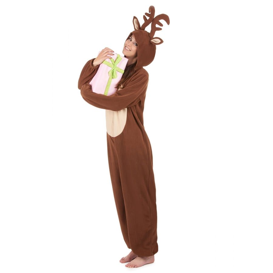 Joignez l'utile à l'agréable en vous tenant au chaud lors des fêtes hivernales, dans notre combinaison de renne pour femme.