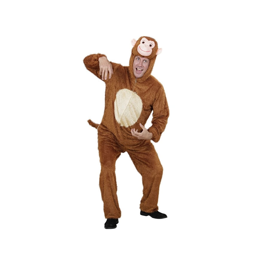 L'expression faire le singe n'est pas forcément péjorative. Un enterrement de vie de célibataire par exemple a bien besoin de quelques singeries pour une ambiance au top. Devenez le centre d'animation grâce à cette combinaison de singe marron pour adulte. Il s'agit d'une combinaison à manches longues de couleur marron avec une fausse queue à l'arrière. La couleur est un peu plus claire au niveau du torse. Le costume est doté d'une fermeture éclair sur le devant, la capuche qui va avec est de couleur assortie, elle comprend une tête de singe avec son grand sourire et ses deux oreilles qui décollent. Enfilez ce déguisement et vous pourrez devenir l'une des mascottes les plus drôles de l'histoire !