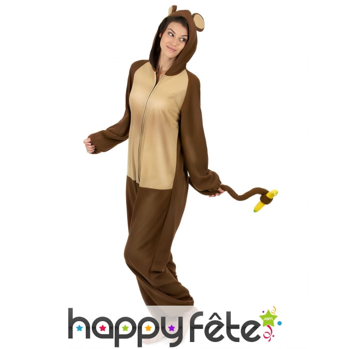 Et attendez, ce n'est pas tout ! La cerise sur le gâteau, c'est cette adorable capuche dotée de deux oreilles de singe qui vous donnera un air coquin. Vous sentez-vous prête à faire des bêtises ? Avec des élastiques stratégiquement placés aux poignets et aux chevilles pour un ajustement parfait et une queue flexible à l'arrière, ce déguisement est conçu pour le confort autant que pour le style.