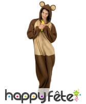 Cette tenue polaire douce au toucher vous gardera confortablement au chaud tout en vous permettant de danser et de vous amuser sans entrave. La combinaison marron, agrémentée d'une nuance plus claire au niveau du buste, est d'une simplicité enfantine à mettre grâce à une fermeture éclair pratique.