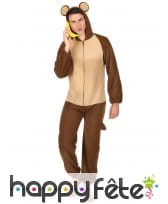 D'abord, parlons confort. La matière effet polaire douce comme une caresse est tout ce dont vous avez besoin pour faire grimper le baromètre cocooning. De couleur marron profond, elle rappelle à la perfection le pelage de nos amis les primates. Et pour parfaire l'illusion, le buste et les oreilles s'illuminent d'un beige tendre, comme si vous étiez tout droit sorti de la jungle.