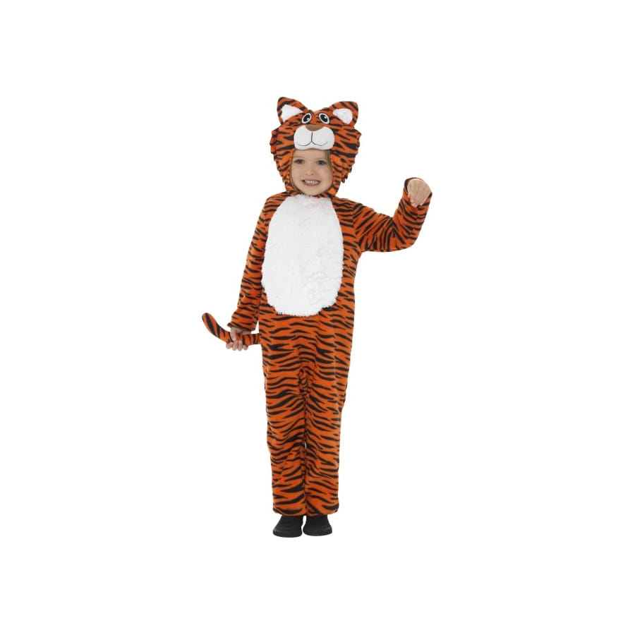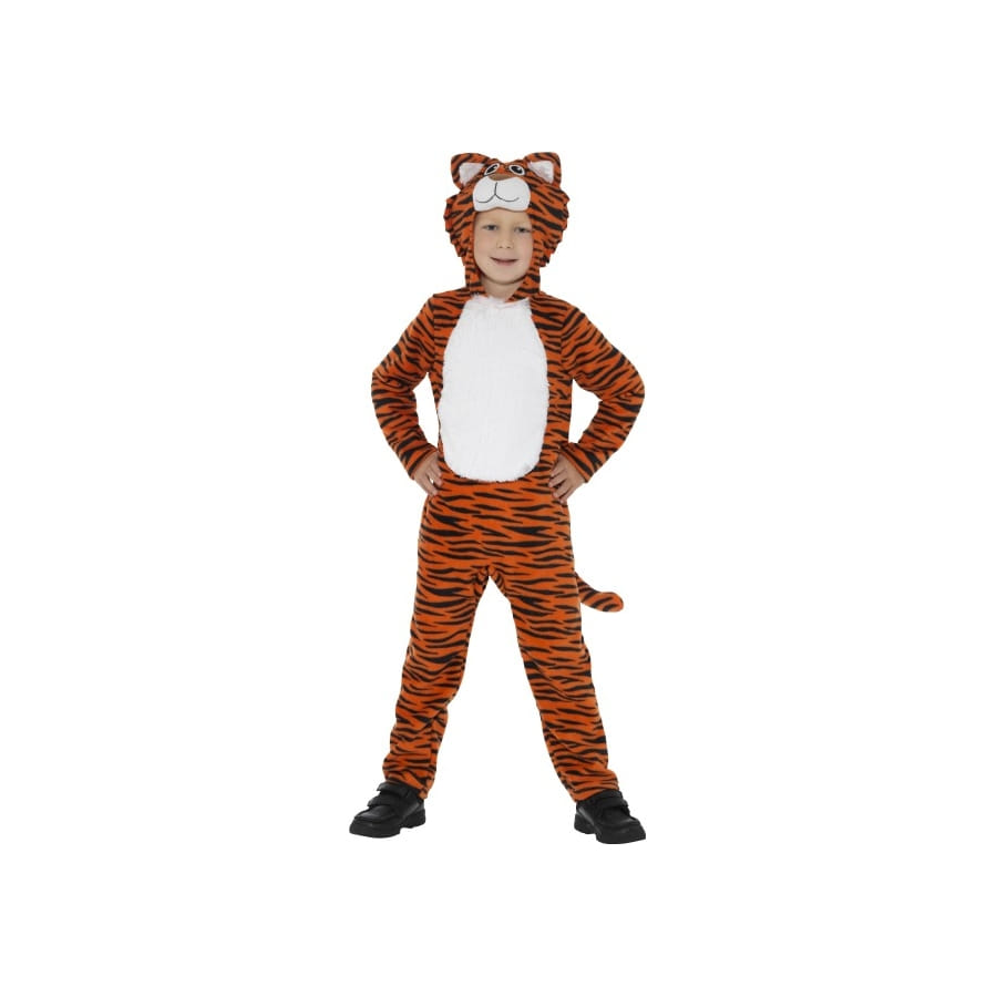 Le tigre ne vous aura jamais semblé aussi adorable qu'aujourd'hui ! Votre bambin sera bien à l'aise dans la peau de ce grand félin grâce à la combinaison de tigre pour enfant. Cet article est proposé sous différentes tailles pour les petites filles et les petits garçons de 4 à 14 ans. Il est principalement constitué par une combinaison de tigre à fourrure orange rayé de noir, avec une partie blanche au niveau du torse. Sa queue est bien évidemment placée à l'arrière. La capuche présente une tête de tigre un peu rigolote avec des yeux globuleux. Le déguisement peut faire office de mascotte à l'occasion d'un événement sportif à l'école.