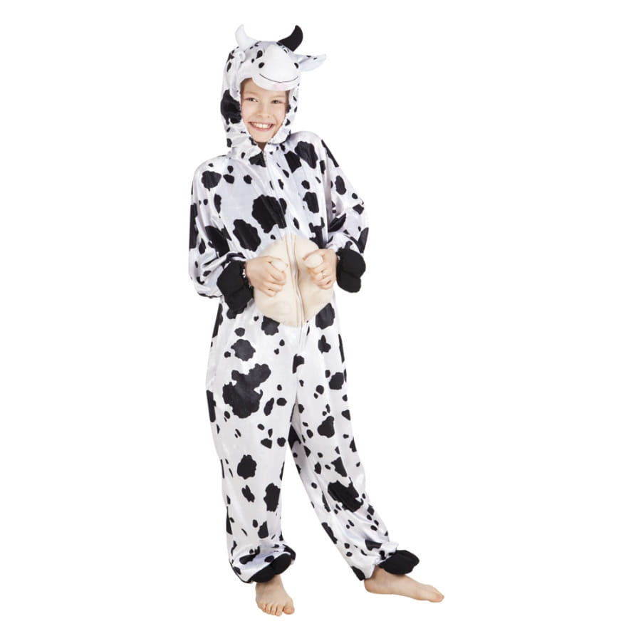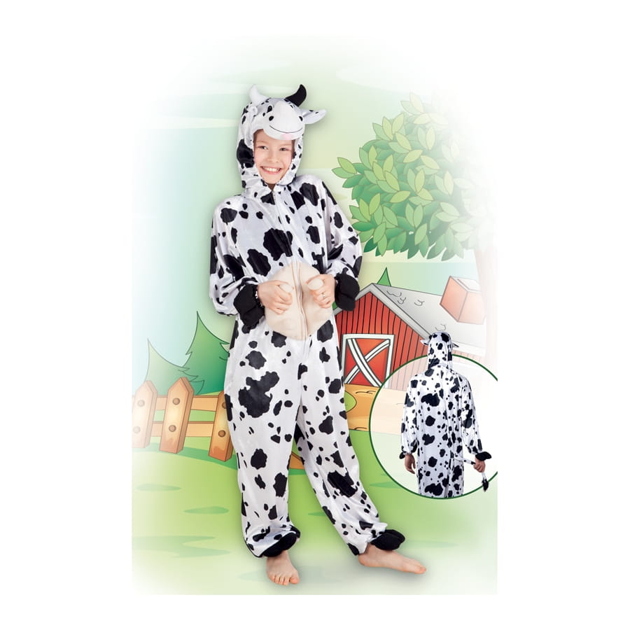 Meeeeeeuuuh !!! Voilà ce qui nous vient en tête quand on parle de la vache. Pour une journée spéciale sur le thème des animaux de la ferme ou pour jouer les mascottes, la combinaison vache peluche est l'idéale pour se déguiser. Pour garçon comme pour fille, cette combinaison noire et blanche tout en un avec sa tête, ses mains, ses pieds et sa queue est très pratique, pas de difficulté pour la mettre. Vous pourrez alors déguiser votre petit bambin pour sa fête et assurez vous de prendre la bonne taille. Cet article est disponible pour les enfants en taille 140 cm.