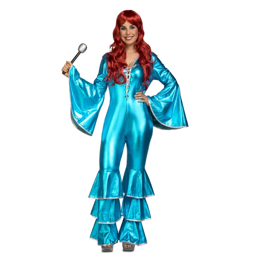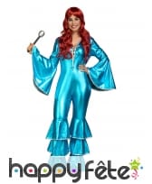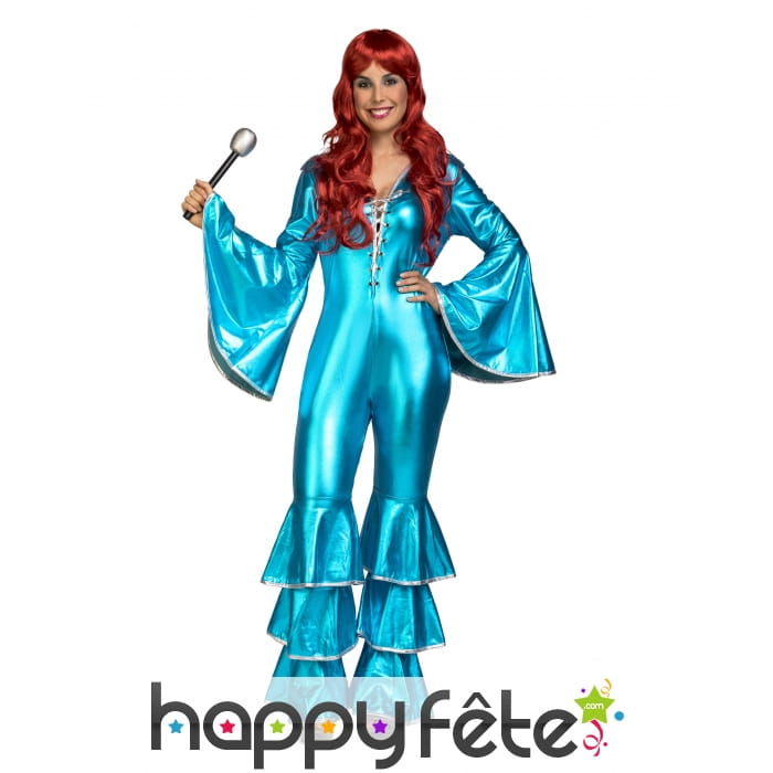 Craquez pour cette combinaison disco bleue pour femme, manches larges, et montrez-vous digne d'une vraie star des années 70.