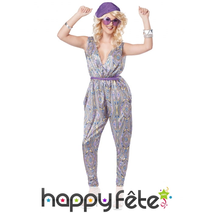 Animez une piste libre au rythme musical des années 70 et 80, revêtue de cette combinaison Disco bouffante effet brillant.