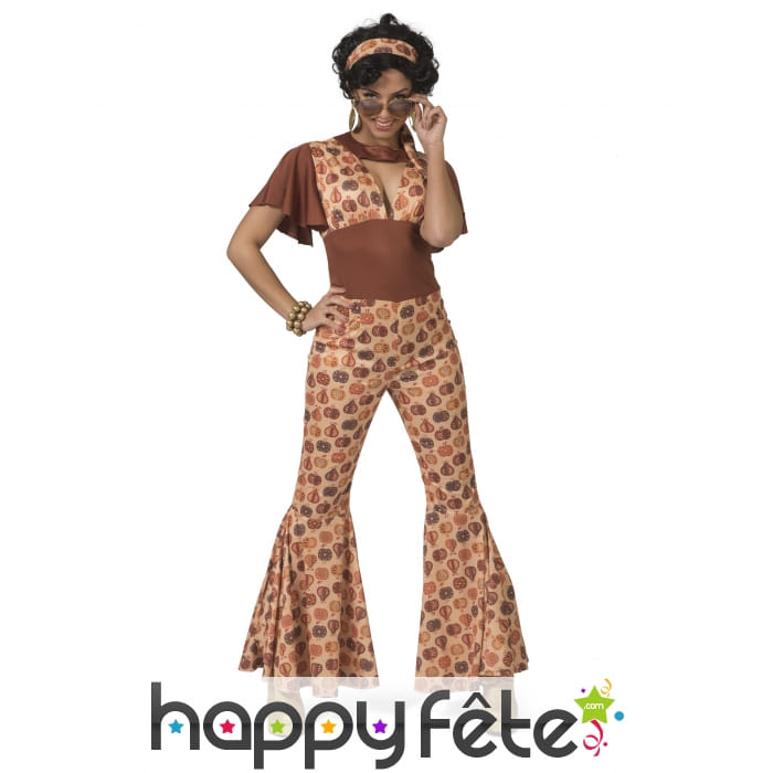La combinaison disco pattes d'éph marron pour femme vous fera craquer pour l'option rétro lors de votre prochaine soirée entre amis.