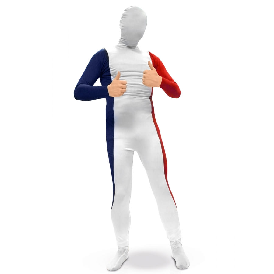 Portez les couleurs de la France de la tête au pied avec cette combinaison seconde peau Bleu Blanc Rouge.