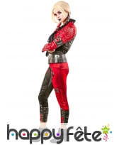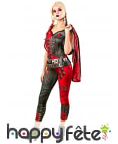 Elle est près du corps et possède une fausse ceinture aux initiales de Harley Quinn.