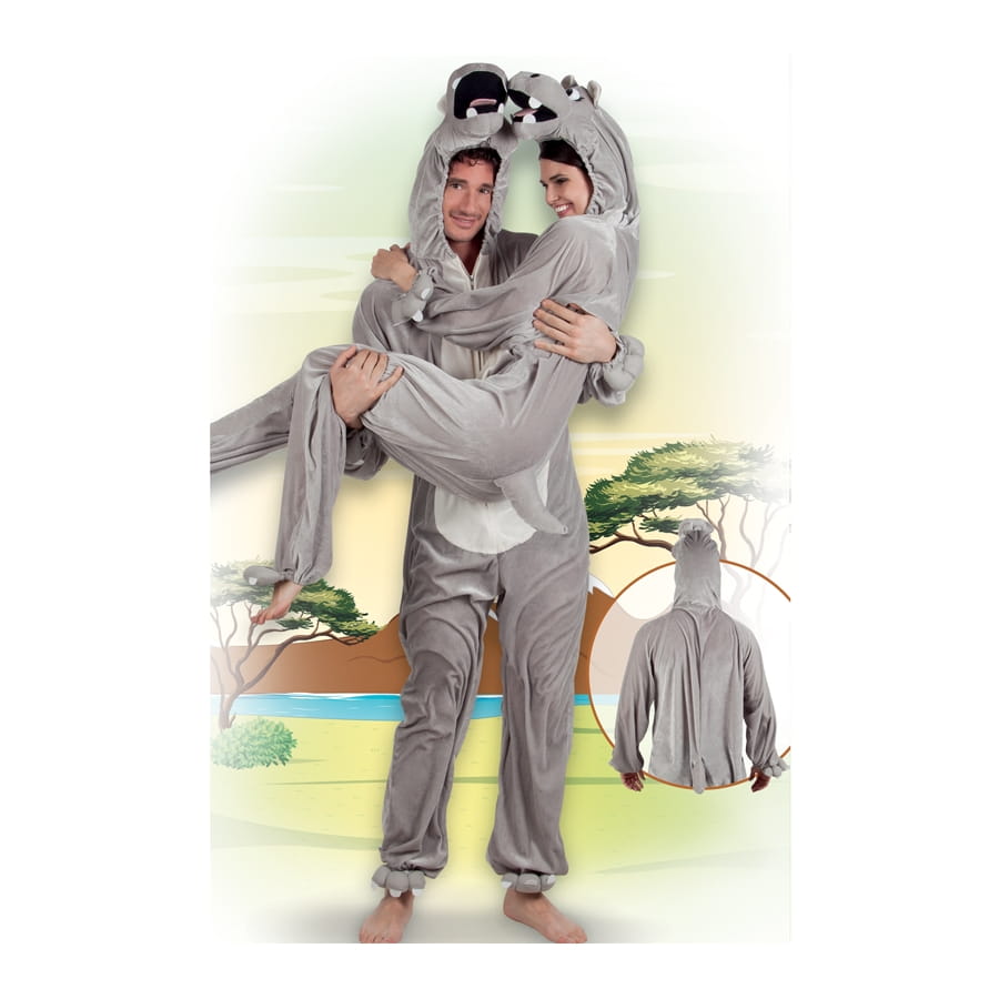 Ce serait plutôt drôle si pour une fois papa, maman et enfants portaient des déguisements assortis ! Une gentille petite famille d'hippopotames en peluche tout gris. Pour faire dans l'original, c'est une bonne idée et en plus c'est facile à porter. Nous vous proposons une combinaison tout en un comprenant la tête, les mains, les pieds et la queue. Cette combinaison hippopotame est disponible pour les enfants mesurant jusqu'à 140 cm, et pour les adultes en taille M jusqu'à 180 cm et en taille L jusqu'à 195 cm. Pour les prochaines fêtes, soyez les plus beaux, soyez des hippo !