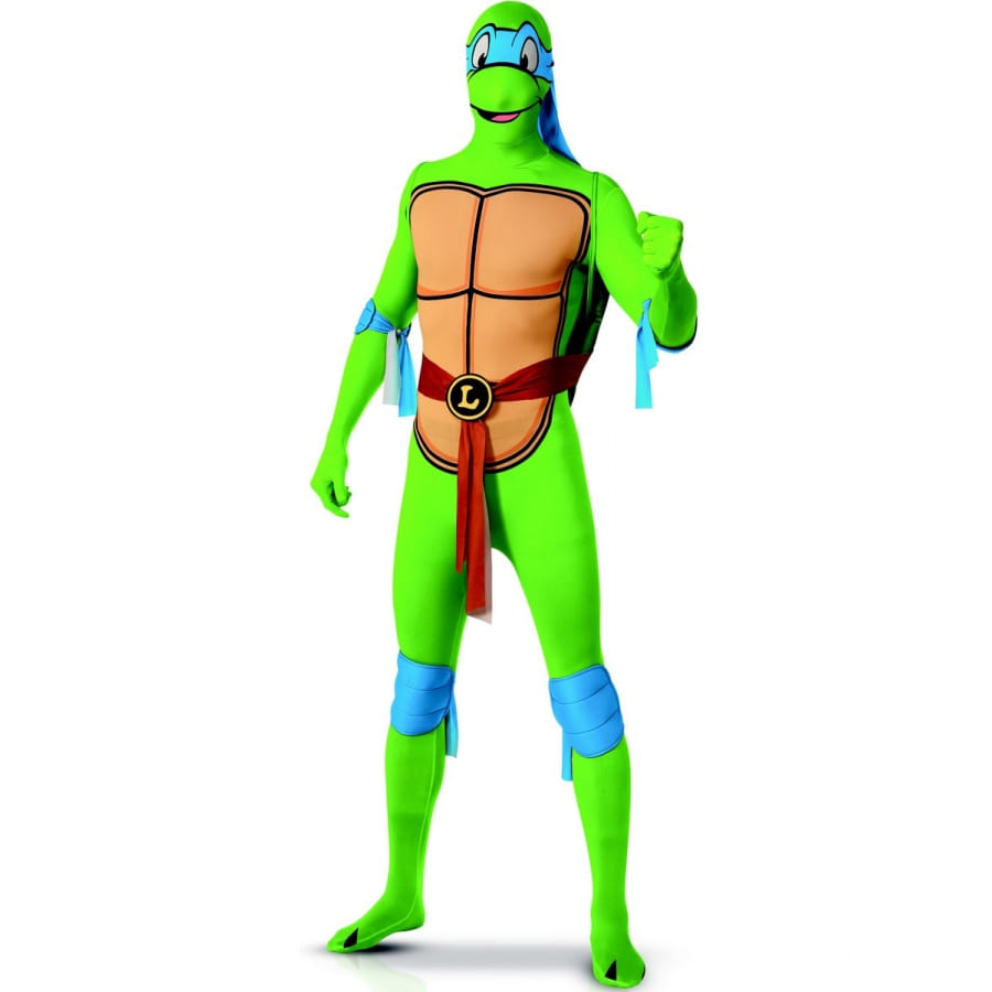 La combinaison intégrale Leonardo tortues ninja recouvre complètement le corps de celui qui la porte.