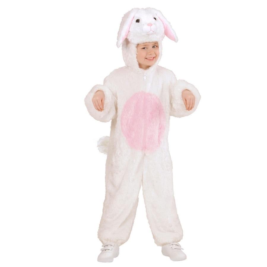 Il s'agit d'un déguisement constitué d'une combinaison munie d'une capuche représentant la tête d'un lapin avec de jolies oreilles tombantes.