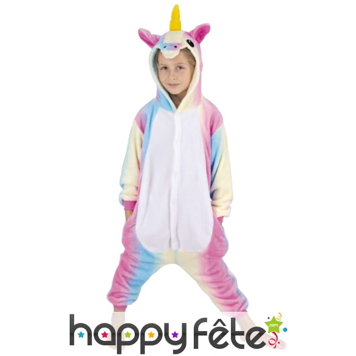 La combinaison licorne blanche arc-en-ciel pour enfant conviendra aux garçons comme aux filles.