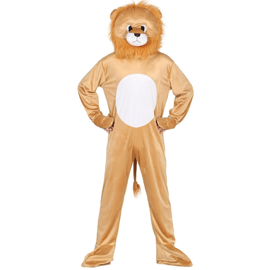 Ce déguisement à l'effigie du roi de la jungle est en tissu doux.
