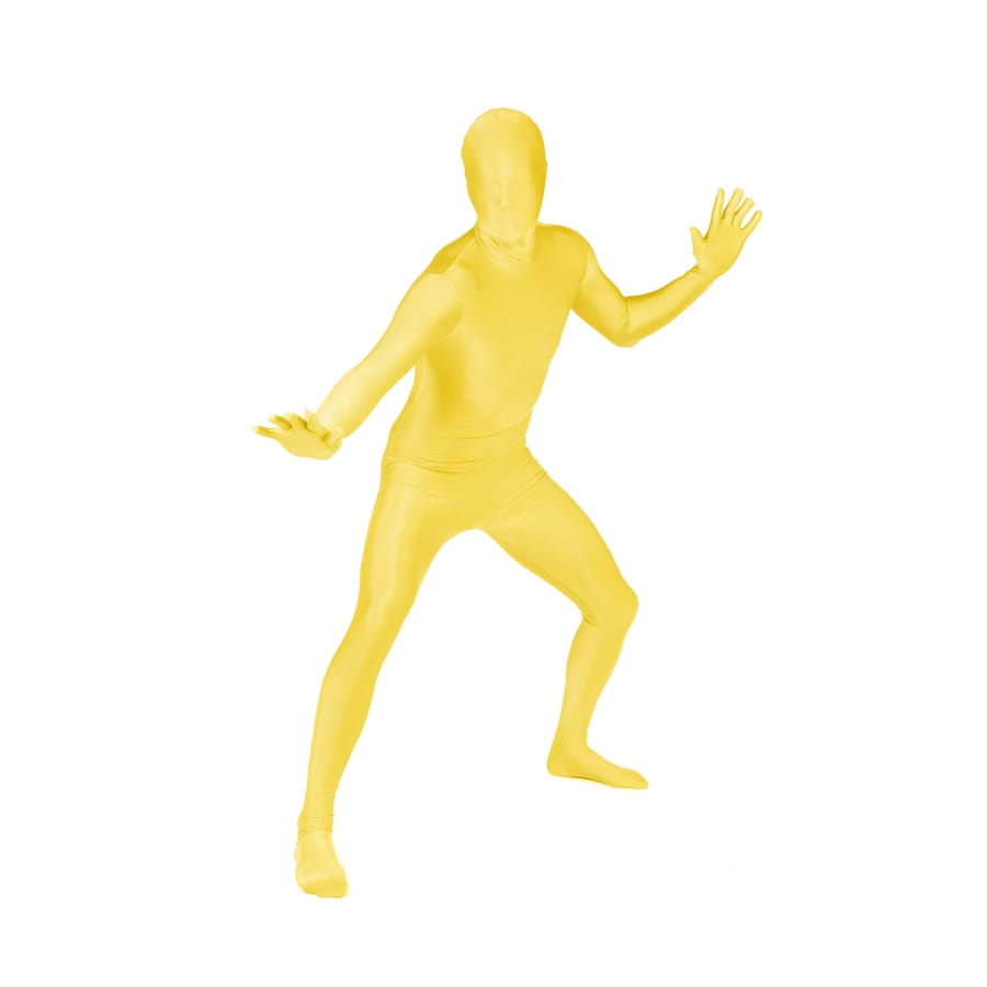 Mettez de la couleur dans vos fêtes en arborant ce splendide costume seconde peau combinaison jaune ! Effectivement, celui-ci est colorié vivement tout en jaune... n'est-ce pas la meilleure façon de se démarquer ?! Il est constitué d'une combinaison intégrale proche du corps et d'une cagoule qui cachent tout sauf votre morphologie. Vous pourrez le mettre facilement grâce à une fermeture éclair qui se trouve dans le dos. C'est un costume mixte, sous licence officielle morphsuit, spécialement conçu pour adultes. Nous vous proposons les tailles suivantes : L/ M/ XL, à vous de choisir. Peu importe où vous allez : à un événement festif, sportif ou déguisé..., vous serez en mesure d'attirer toutes les attentions !
