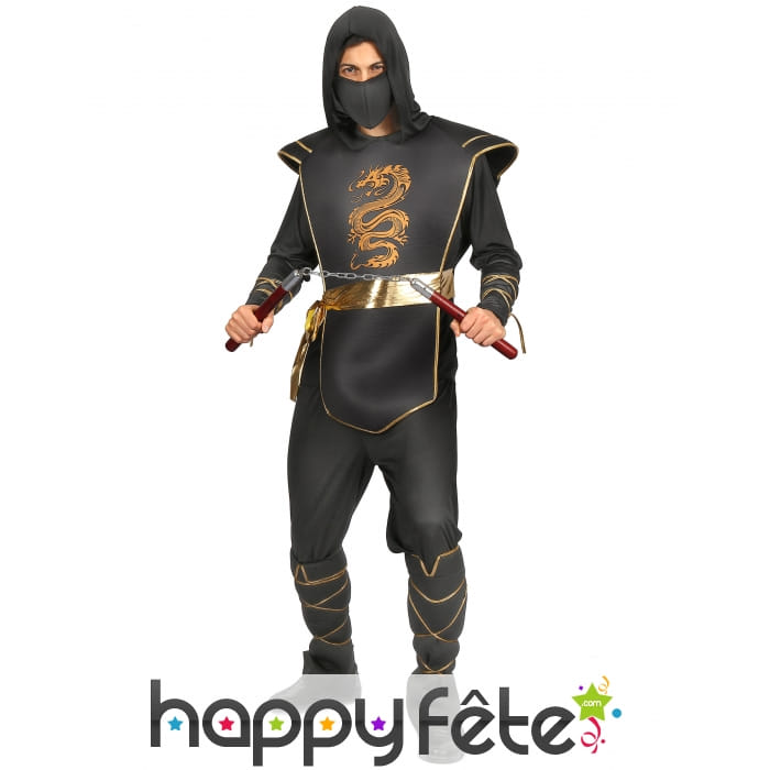Réunissez la panoplie complète du ninja grâce à la combinaison noir or d'homme ninja.