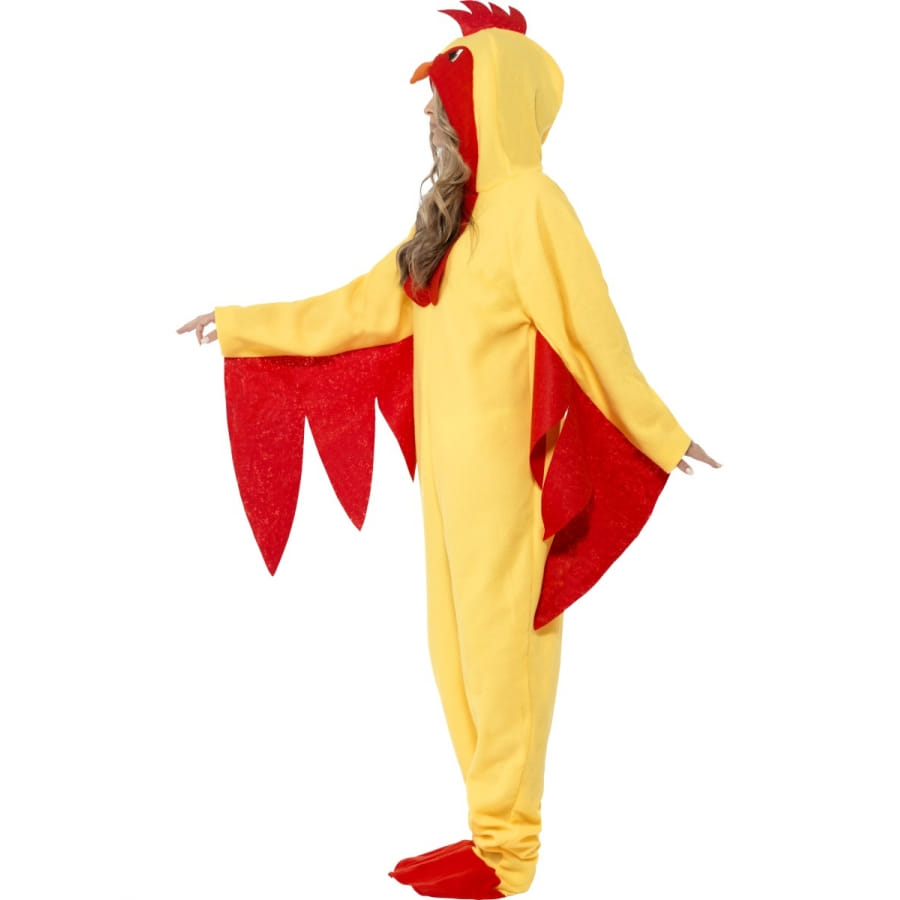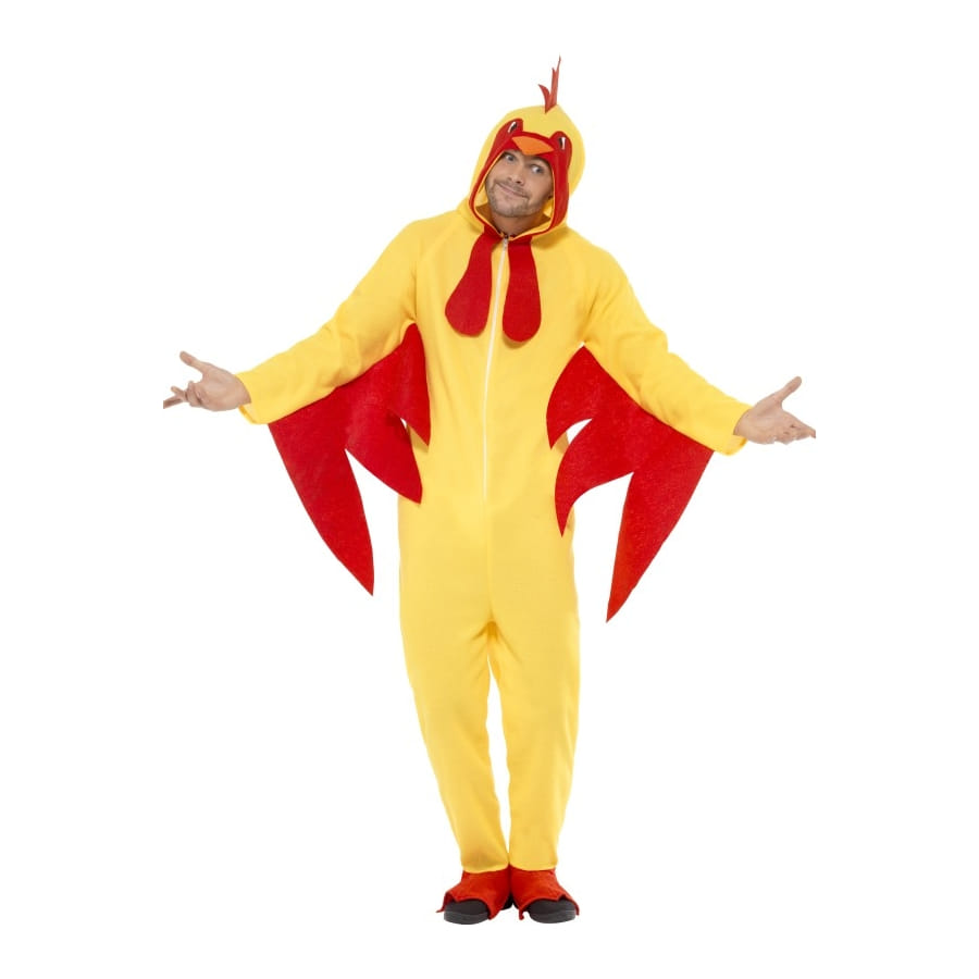 Un poulet de la tête aux pieds ! Vous allez bien vous faire remarquer dans ce déguisement de poulet. Pour jouer les mascottes, pour la promotion d'un magasin ou pour un enterrement de vie de célibataire, ce genre de tenue est tout à fait approprié. Vous disposerez d'une superbe combinaison à manches longues, de couleur jaune et ornée de quelques touches de rouge au niveau des barbillons, des ailes et des doigts. Elle est accompagnée d'une capuche représentant la tête d'un mignon petit poulet, toujours de couleur jaune, avec du rouge pour la crête et autour du bec. Ce fabuleux ensemble vous est proposé en taille M et L. La taille M correspond à une poitrine de 96-101 cm et un entrejambe de 83 cm, et la taille L correspond à une poitrine de 106-110 cm et un entrejambe de 83,8 cm, et le modèle de taille 27858L correspond à une poitrine de 106-110 cm et un entrejambe de 83,8 cm.