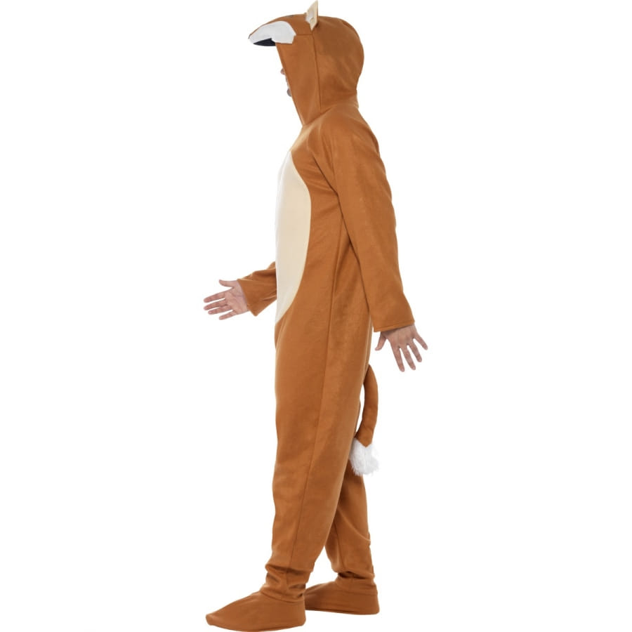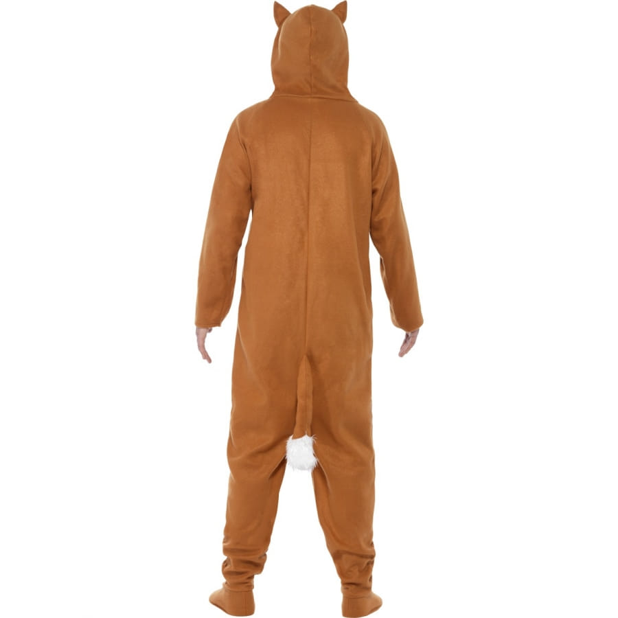 Quel drôle de renard vous faites dans ce costume ! Messieurs, pour animer une fête d'anniversaire ou une fête foraine, les animaux sont toujours appréciés par les enfants, surtout s'ils sont aussi rusés. De plus, le renard n'est pas un animal que l'on peut trouver partout. Emmenez vos petits garnements à la découverte de ce spécimen fascinant ! N'hésitez donc pas à opter pour ce beau déguisement. Il est composé d'une combinaison à manches longues de couleur marron, avec une touche de blanc au niveau de l'abdomen. Vous disposerez aussi d'une petite queue à l'arrière, rattachée à la combinaison, de couleur marron avec une pointe blanche. N'oublions pas le plus important : la capuche assortie en forme de tête de renard, avec les deux petites oreilles ! Deux tailles différentes vous sont proposées : la taille M correspondant à une poitrine de 96-101 cm et à un entrejambe de 83 cm, et la taille L correspondant à une poitrine de 106-110 cm et à un entrejambe de 83,8 cm.
