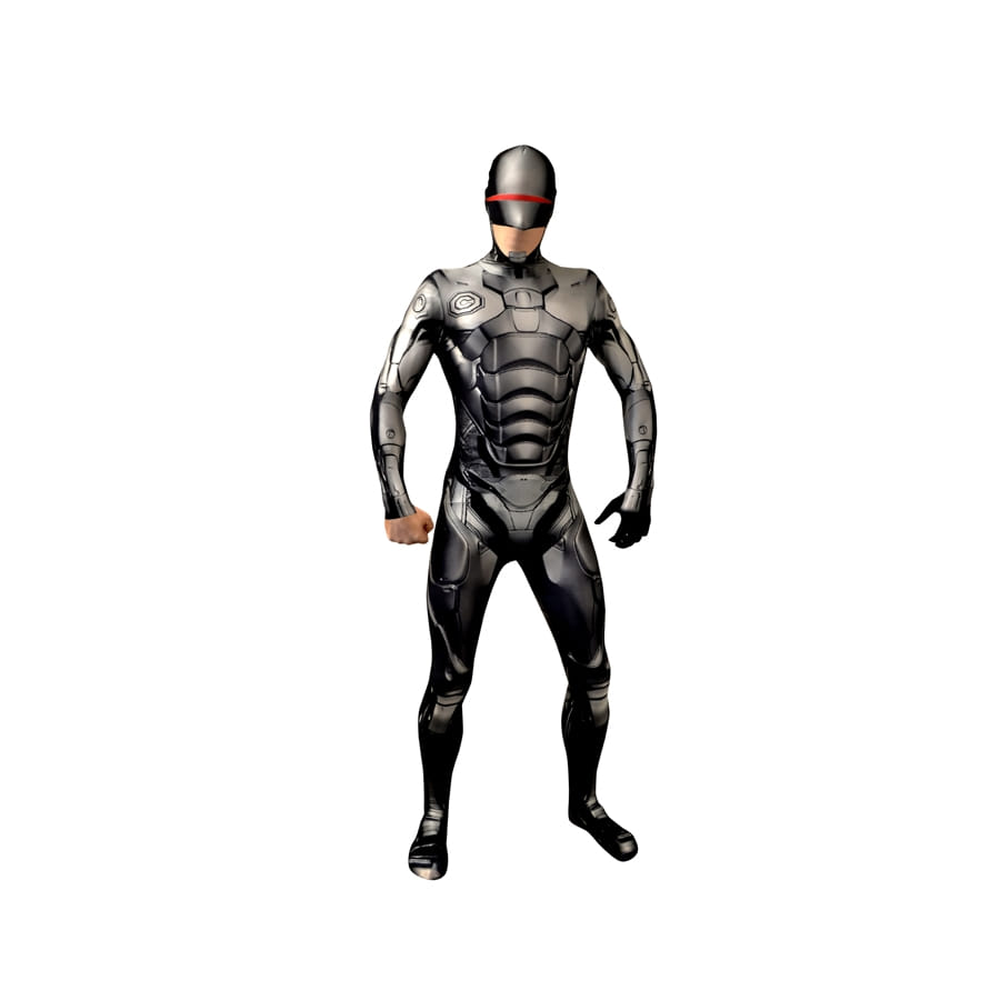 Vous êtes amateur de l'univers de la science-fiction ? Devenez le fameux robot-policier du futur, votre personnage préféré, avec ce costume combinaison Robocop Morphsuit pour hommes ! Celui-ci contient une combinaison intégrale top qualité de couleur argentée et une cagoule assortie, le tout imprimé avec des détails de façon très réaliste. Sous licence officielle Morphsuit, ce déguisement seconde peau offre un confort parfait, il est étudié pour que vous puissiez respirer et voir au travers de la cagoule sans souci. Il vous promet également une fête inoubliable. Alors, ne soyez pas en retard pour la commande ! Notez qu'il est disponible en tailles L, M et XL.