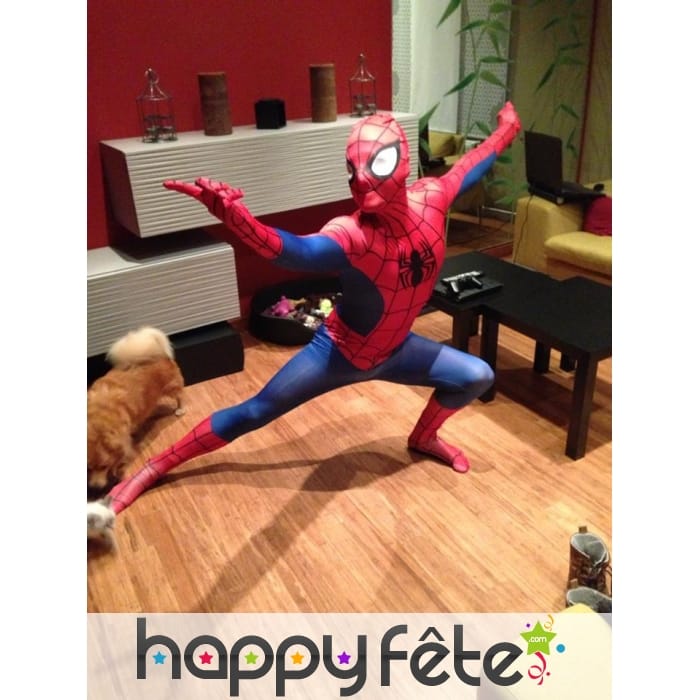 Pour vous les hommes, vous qui aimeriez être dans la peau de votre super héros préféré, cette combinaison seconde peau sous licence seconde peau Spiderman est fait pour vous. C'est une réplique parfaite du vrai costume de ce super héros, qui conviendrait à la majorité de ceux qui recherchent une tenue pour un événement spécial. Le déguisement est disponible en taille L et M. De couleur rouge et bleue, vous pourrez noter sur le haut du costume des toiles tissées ainsi qu'une araignée noire sur la poitrine de la combinaison, le bas étant bleu. Il ne reste plus qu'à trouver une sorte de petit gadget à mettre sur la main pour simuler les toiles d'araignée qui en sortent lorsque Spiderman prend son envol. En avant, messieurs, l’aventure vous attend !