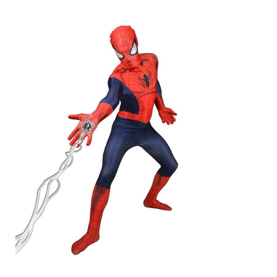 Effet bluffant ! Nous vous proposons ce costume combinaison Spiderman en réalité augmentée pour impressionner tous vos amis. C'est un déguisement exceptionnel, vraiment pas comme les autres ! Il est sous forme d'une seconde peau, composé d'une combinaison complète avec une fermeture éclair dans le dos et d'une cagoule. De couleur bleue et rouge, ce superbe costume ressemble comme deux gouttes d'eau à celui du vrai Spiderman. Et ce n'est pas tout, des effets spéciaux viendront se rajouter à certains endroits du déguisement pour former une réalité parfaite une fois que vous aurez téléchargé l'application spécialement conçue pour cela (vous filmez le déguisement et, à travers votre smartphone/tablette, vous découvrirez les effets spéciaux qui viendront se superposer à la réalité). Ce déguisement est sous licence officielle Morphsuit / Spiderman, dédié aux hommes, disponible en tailles L/ M/ XL. Quoi de mieux pour briller de mille feux durant toute la soirée déguisée ?