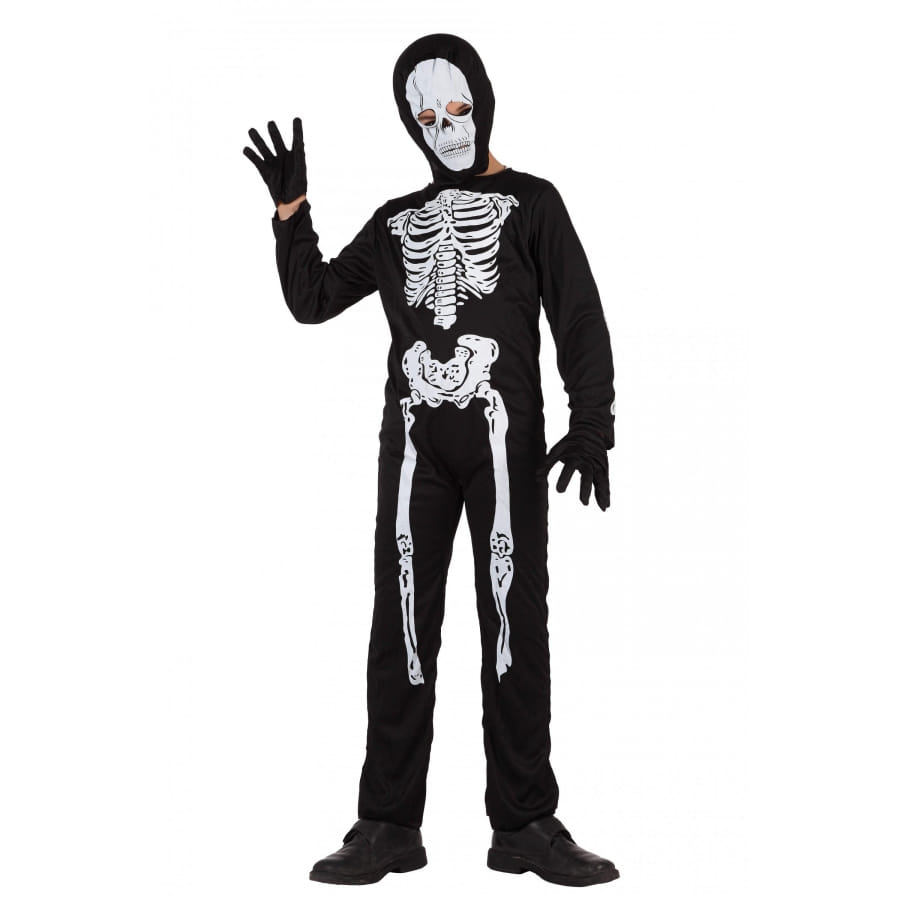 Pour jouer à se faire peur sérieusement, il n'y a rien de mieux qu'un déguisement très réaliste. Il s'agit de la combinaison squelette pour enfant avec cagoule. Un squelette est imprimé sur la combinaison tandis qu'un crâne fait office de visage sur la face de la cagoule avec des ouvertures au niveau du nez et de la bouche. Les gants quant à eux cachent vos mains pour un recouvrir entièrement le corps. La tenue possède un scratch à l'arrière pour l'enfiler facilement.