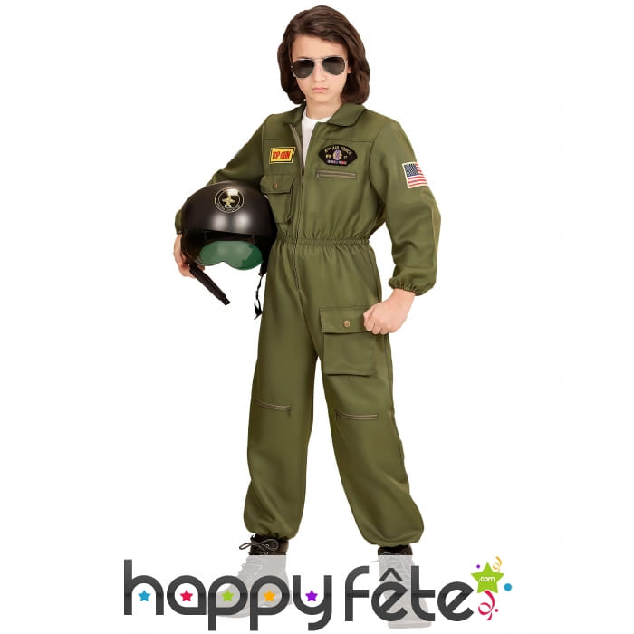 Cette combinaison, inspirée des vrais uniformes des pilotes de combat, est le déguisement parfait pour tous les enfants désireux de rejoindre les rangs de l'armée de l'air. Elle arbore une belle teinte verte kaki, caractéristique des uniformes officiels. Facile à enfiler grâce à sa fermeture éclair à l'avant, elle assure une aisance parfaite pour que votre pilote en herbe puisse jouer en toute liberté.