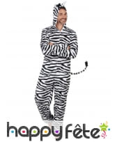 La capuche est équipée de deux oreilles et d'une petite crinière noire pour donner vie à votre zèbre. Et pour rendre le déguisement encore plus réaliste, une petite queue est cousue à l'arrière du costume. Enfin, la combinaison dispose d'une fermeture éclair sur la partie avant pour faciliter l'enfilage et le retrait de la tenue.