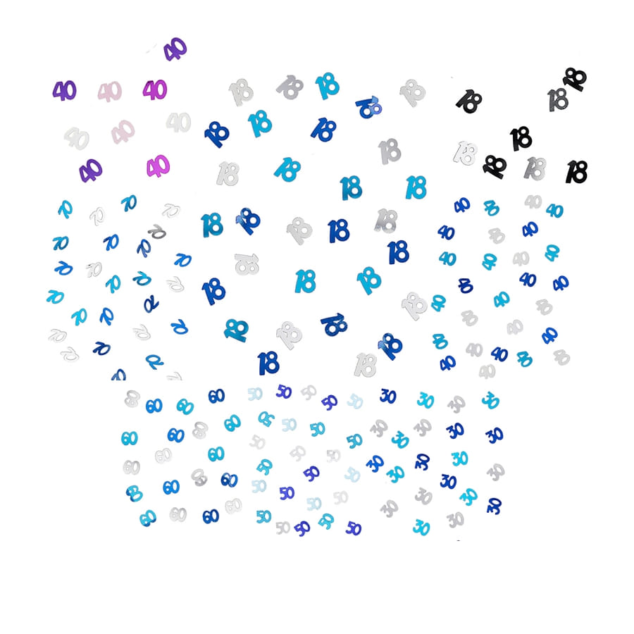 Répandez des confettis dans l'atmosphère à l'occasion d'un anniversaire. Ces confettis âge, 14 grammes sont très spéciaux. Ils indiquent soit un nombre soit une inscription. Plusieurs modèles sont proposés : les nombres 18, 30, 40, 50, 60, 70 ou l'inscription "happy birthday" avec différents coloris : bleu, noir, gris ou rose.