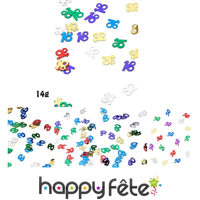 Le sachet de confettis âge pour anniversaire pèse 14 g.