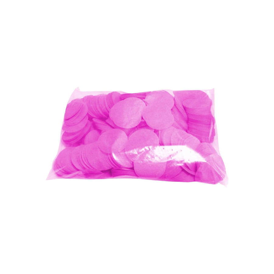 Sachet de confettis de scène ronds ignifugés et biodégradables. La taille de chacun des confettis est de 5 centimètres de diamètre et le sachet pèse 1 kilo. Ils sont disponibles en couleur anis ou fuchsia. La taille et la quantité de confettis les rendent idéaux pour de grands évènements.