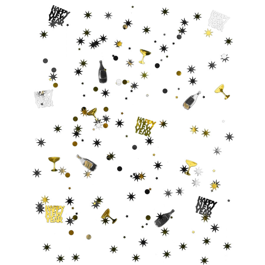 Votre réveillon sera époustouflant grâce à ces confettis de table bouteilles de bulles et coupes, 34g.