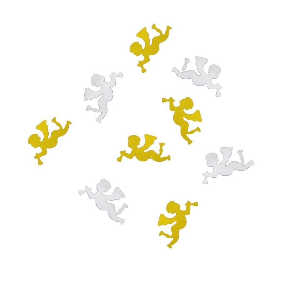 Ce paquet de 10 grammes contient environ 300 confettis représentant des anges doré et argenté de 1.6 cm de long.