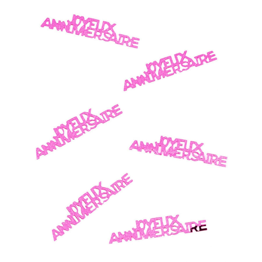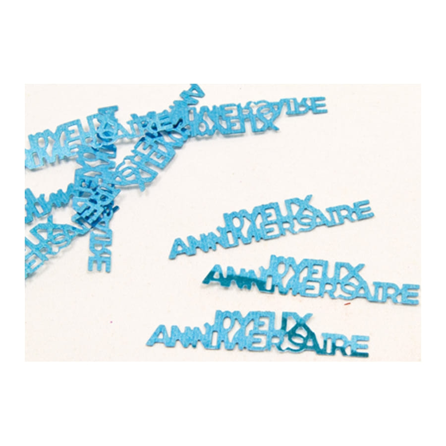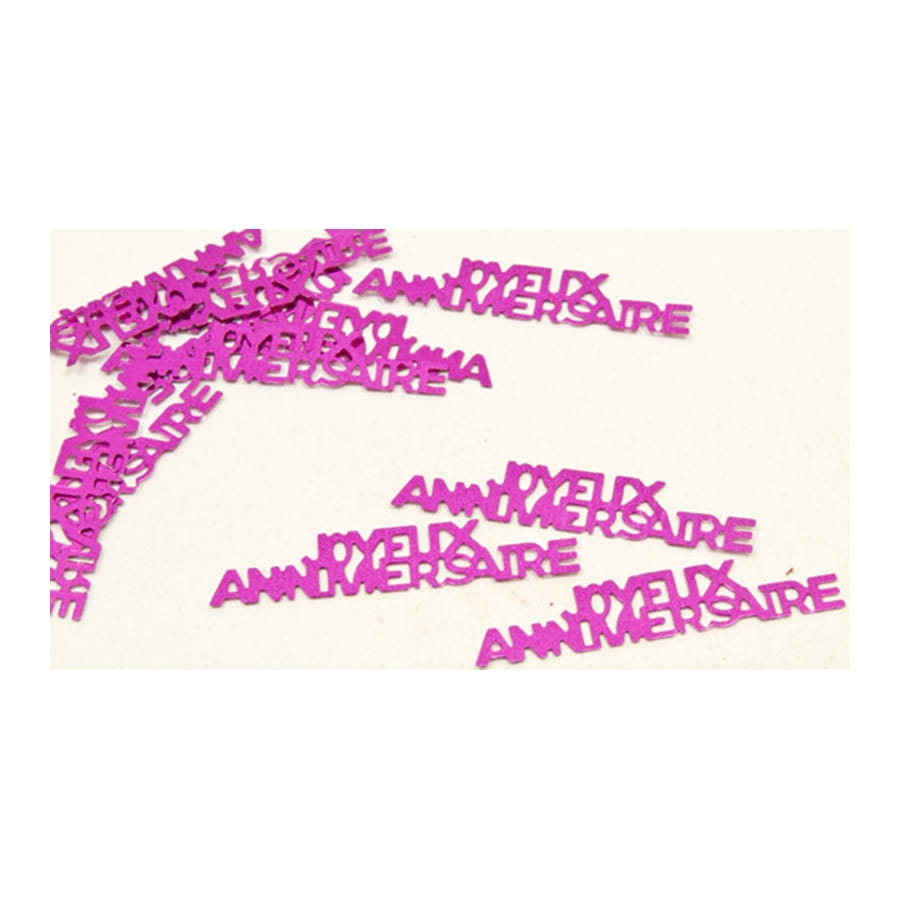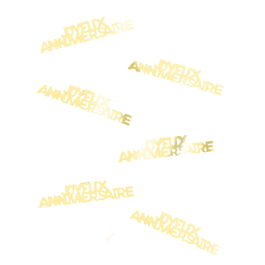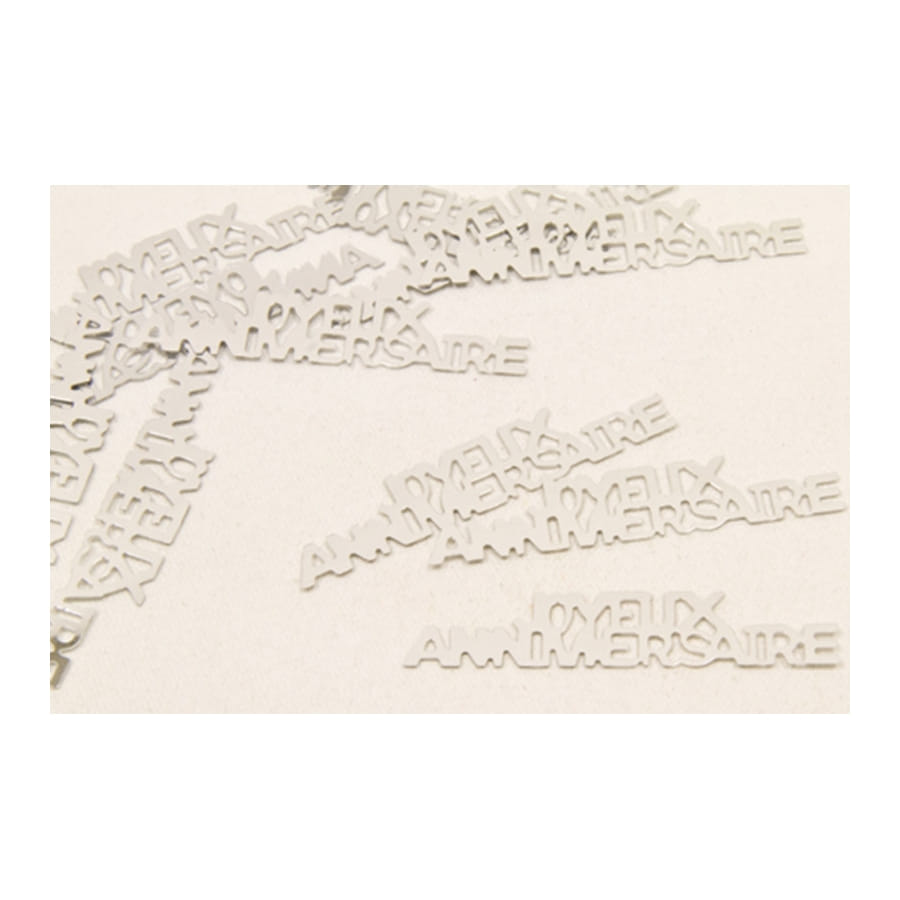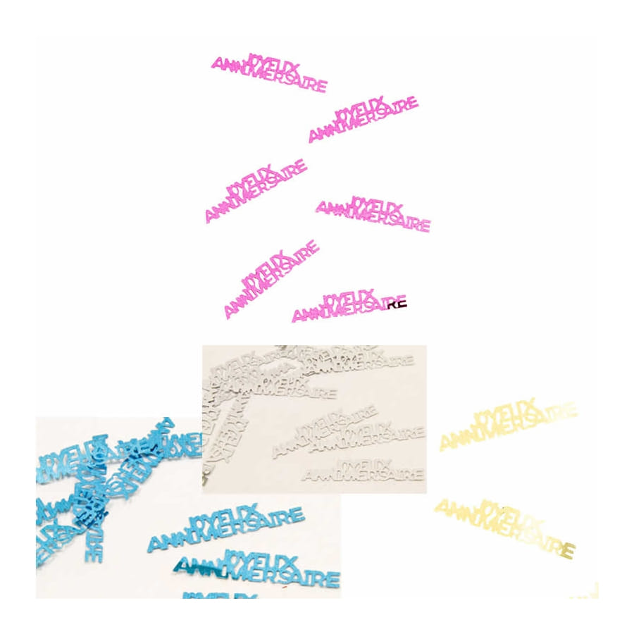 Vous aurez droit à un sachet de confettis de table métalliques avec inscription joyeux anniversaire.