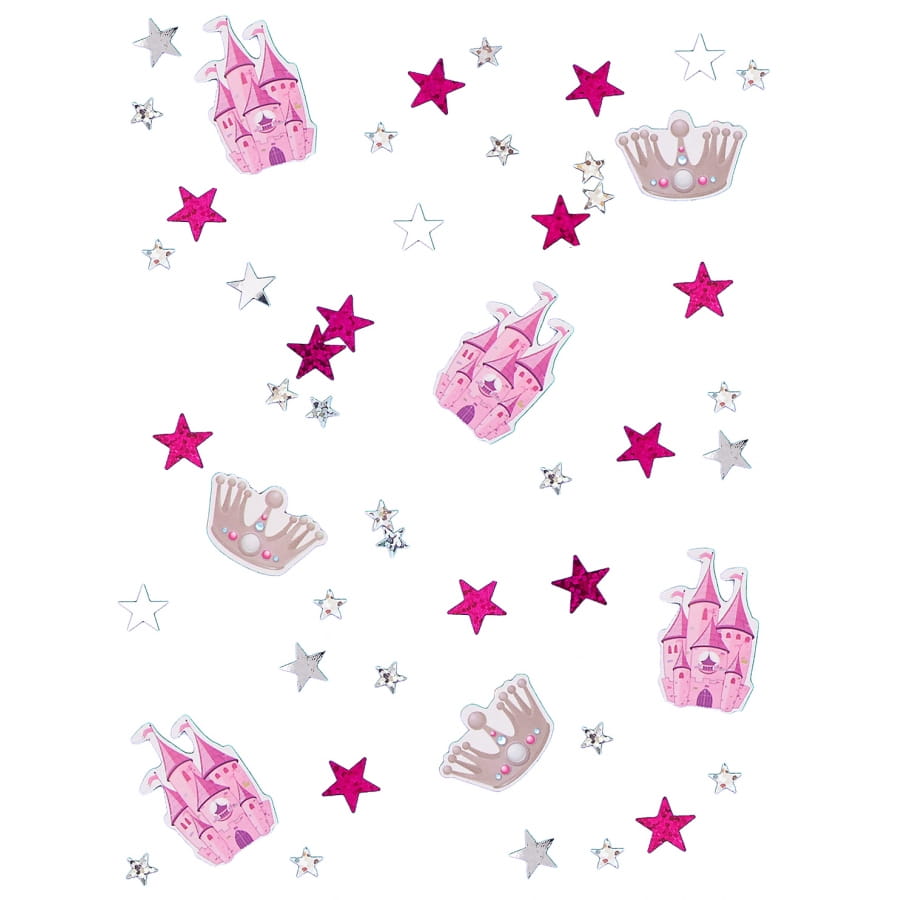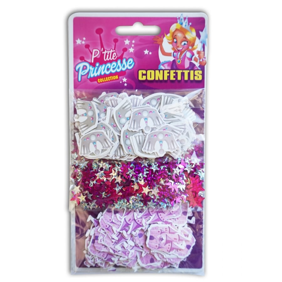 Ces décorations de table sont contenus dans un sachet de 13 x 9 cm à l'intérieur duquel vous trouverez 3 différentes formes de confettis: châteaux de princesse (3 cm), couronnes (2,5 X 2 cm) et étoiles (0,5 à 1 cm).