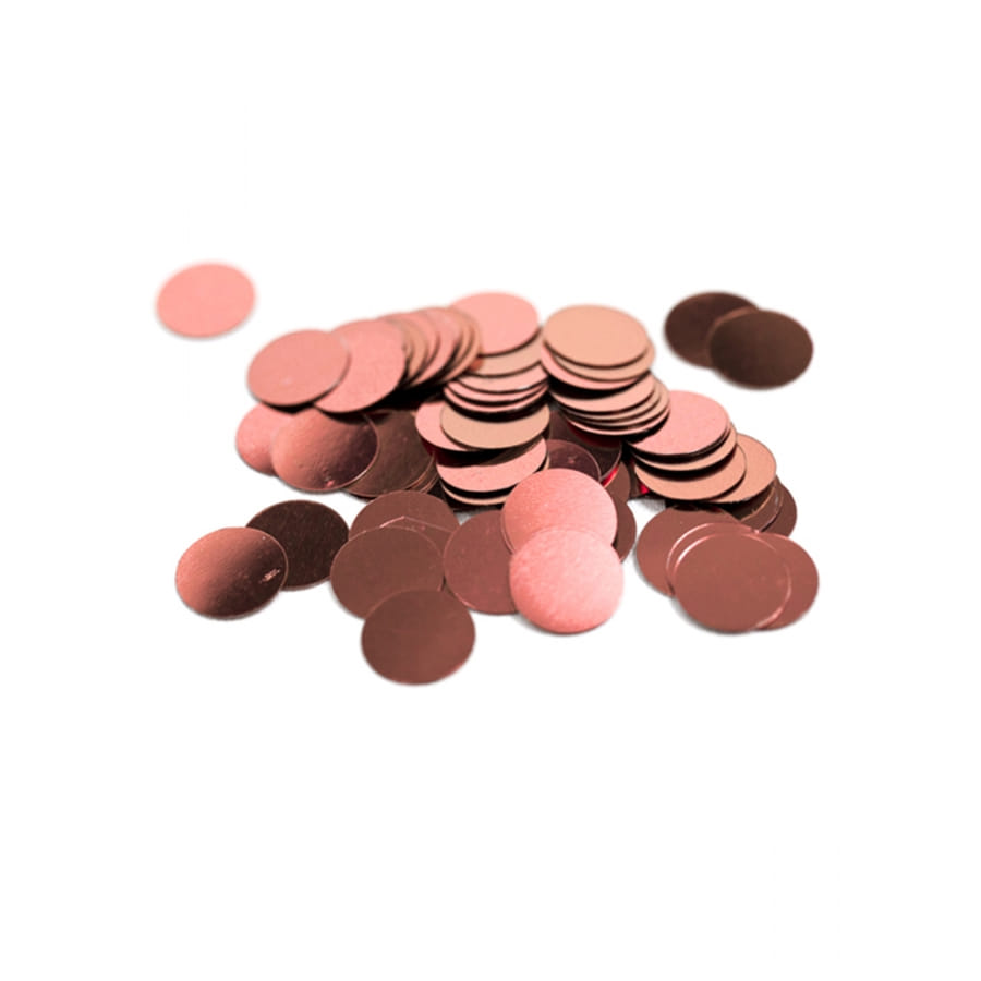 Les confettis de table rose doré de 1,2 cm sont vendus en sachet de 10 gr.