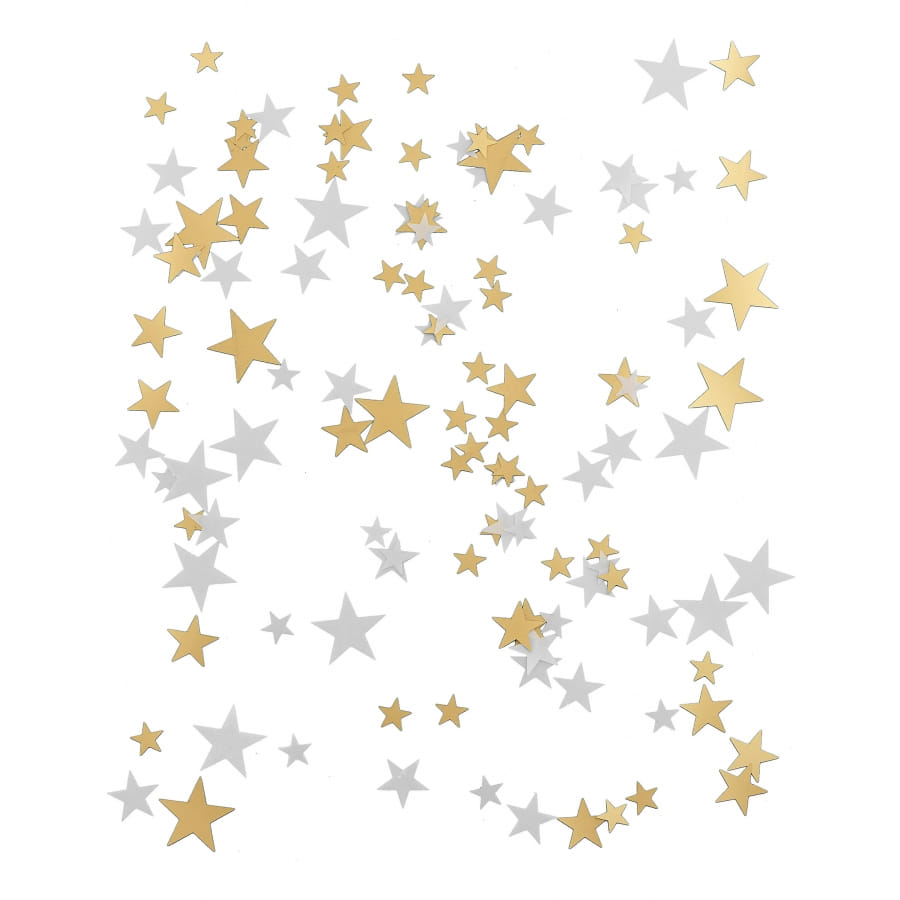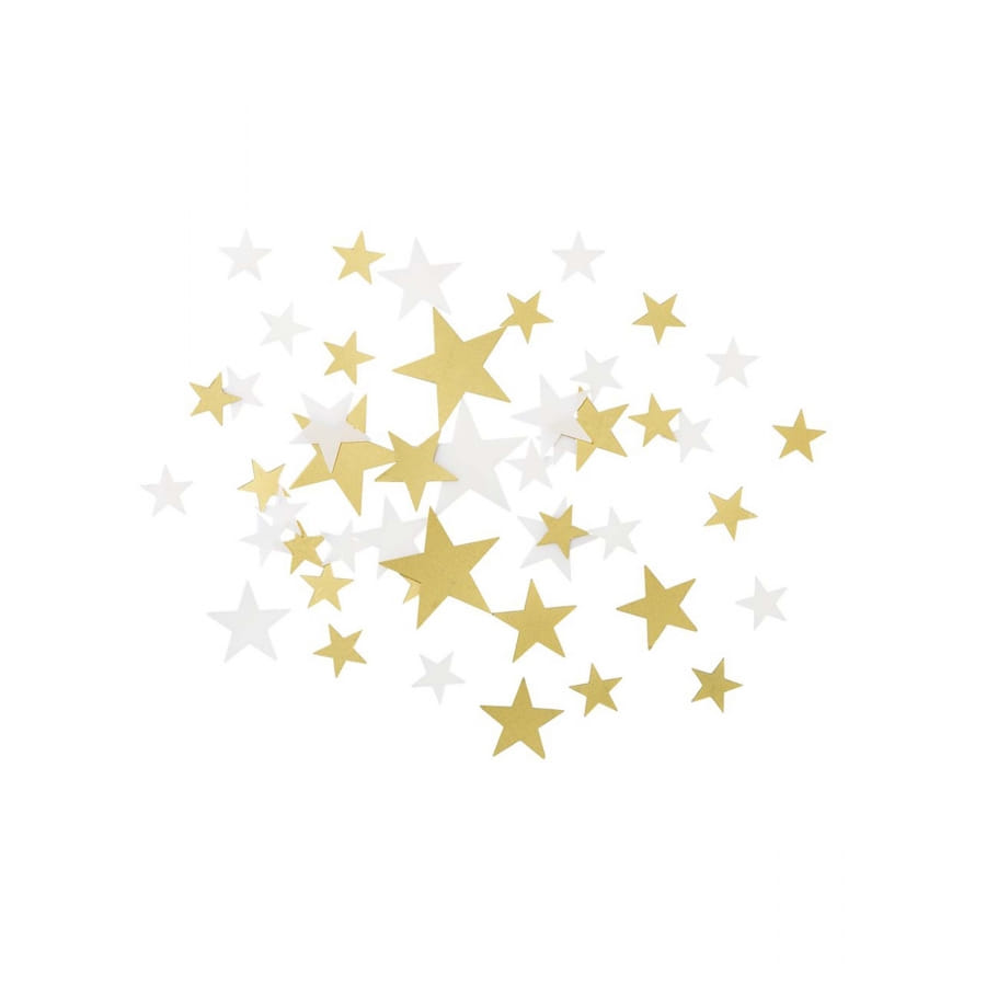 Ces Confettis en forme d'étoiles dorées et blanches mesurent environ 1 à 2 cm.
