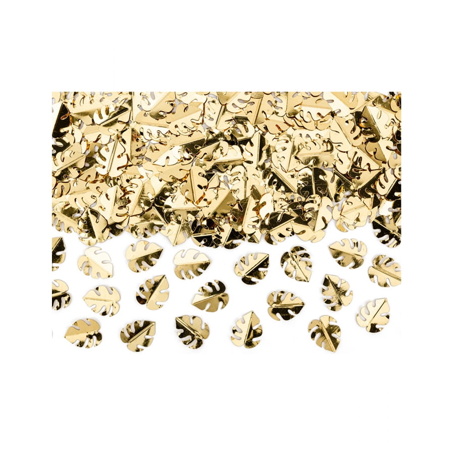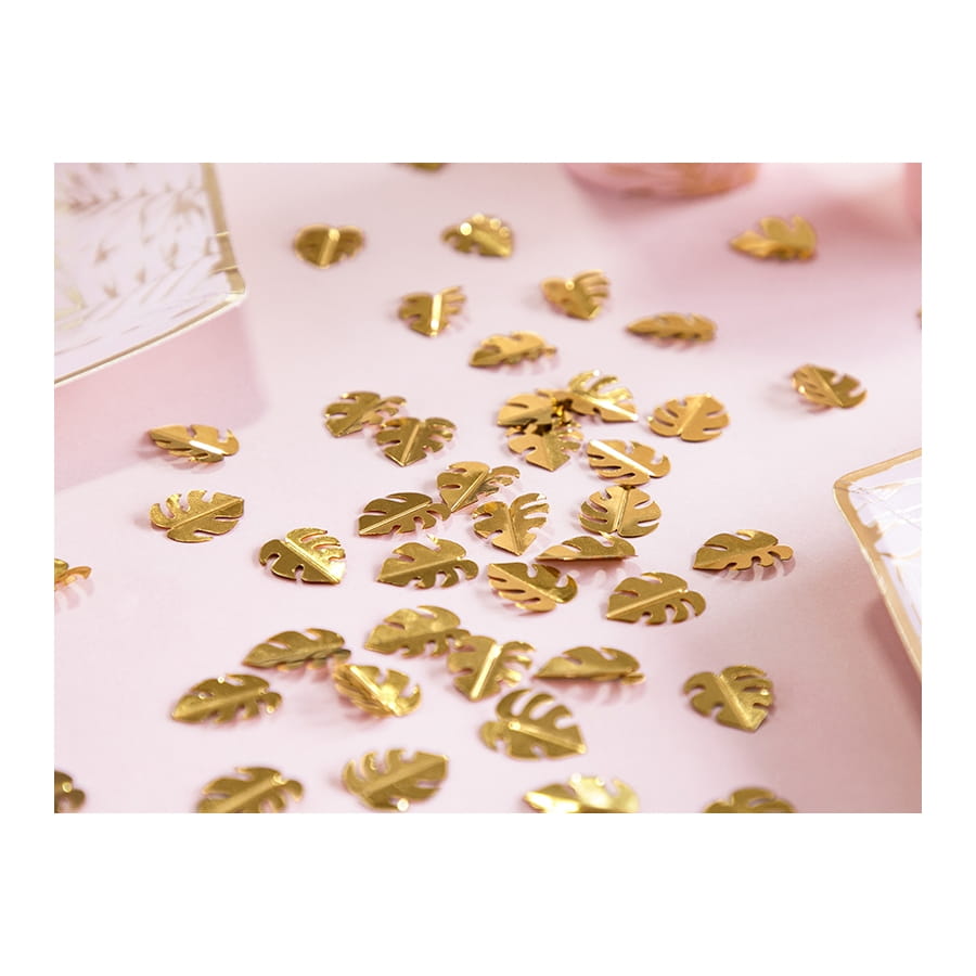 Sublimez votre prochaine déco d'intérieur sur le thème de la jungle ou des îles exotiques, avec les confettis feuilles dorées tropicales, 15 g.