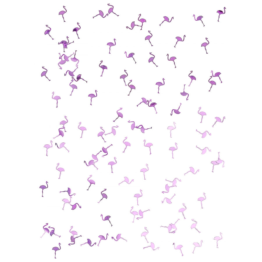 C'est un sachet constitué de confettis en forme de flamants roses de couleur violets métallisés.