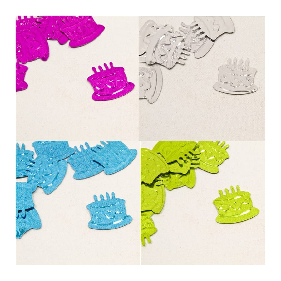 Le gâteau fait partie intégrante de la fête d'anniversaire. Ces confettis gâteau d'anniversaire de table ne sont pas comestibles mais constituent un article de décoration très alléchant ! Chaque confetti présente la forme d'un gâteau rond avec des bougies. Les couleurs disponibles sont le vert menthe, le bleu turquoise, l'argenté et le rose fuchsia.
