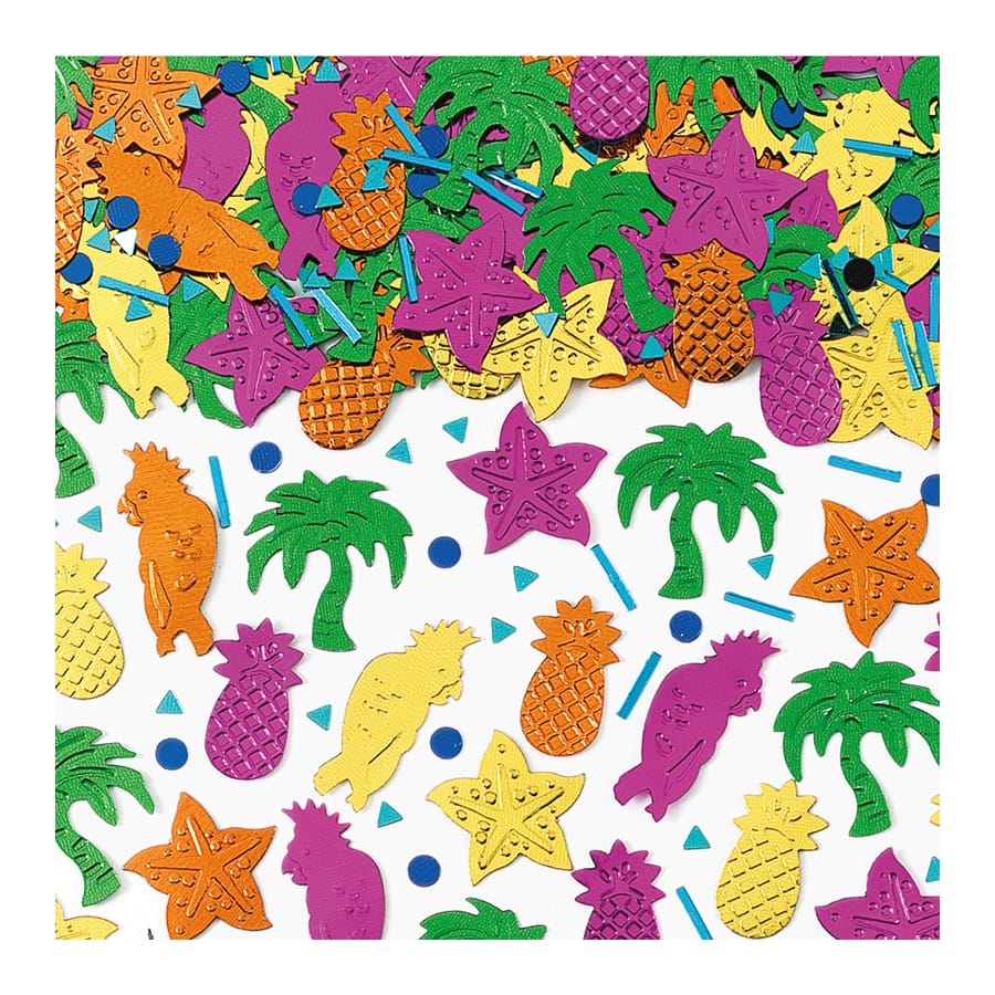 Les vacances parfaites pour tout le monde se situent en général sur une île paradisiaque. Lors d'une célébration, dispersez dans les airs des confettis Hawaï et îles, 14g. Cet article renferme de beaux motifs multicolores qui emporteront vos invités sur une plage exotique à quelques milliers de kilomètres. Vous disposerez de palmiers, d'ananas, d'étoiles de mer, et de plein d'autres surprises !